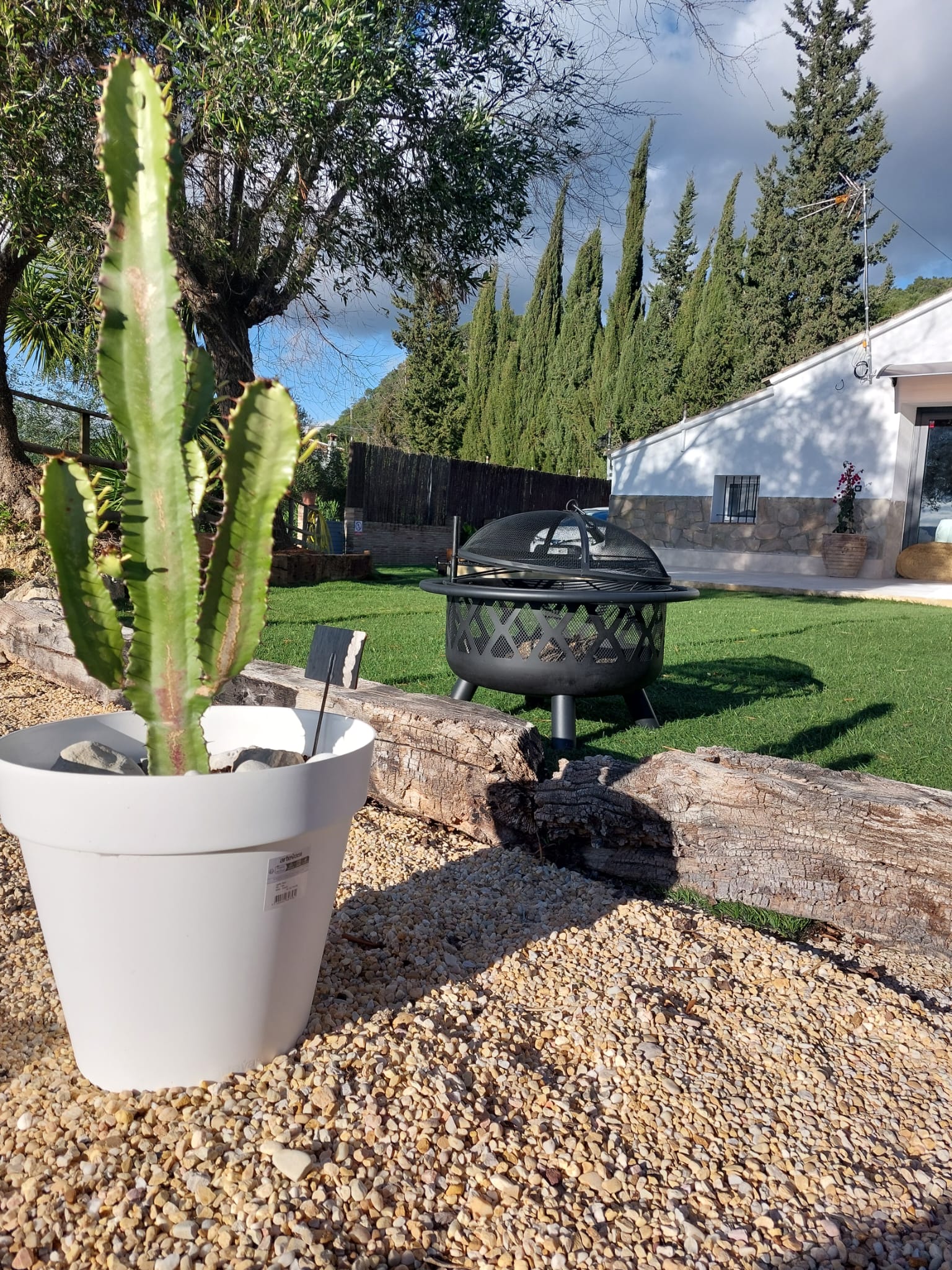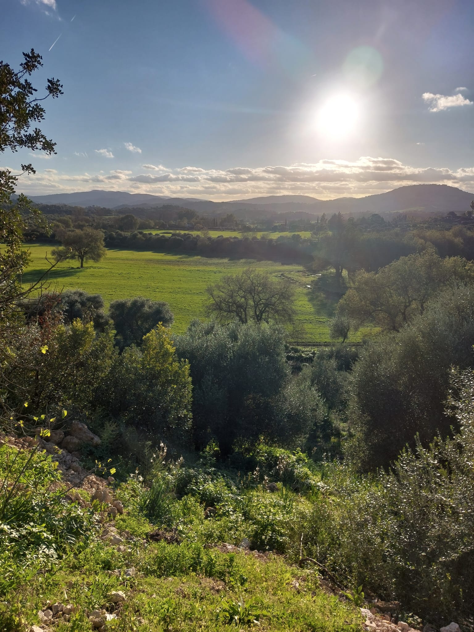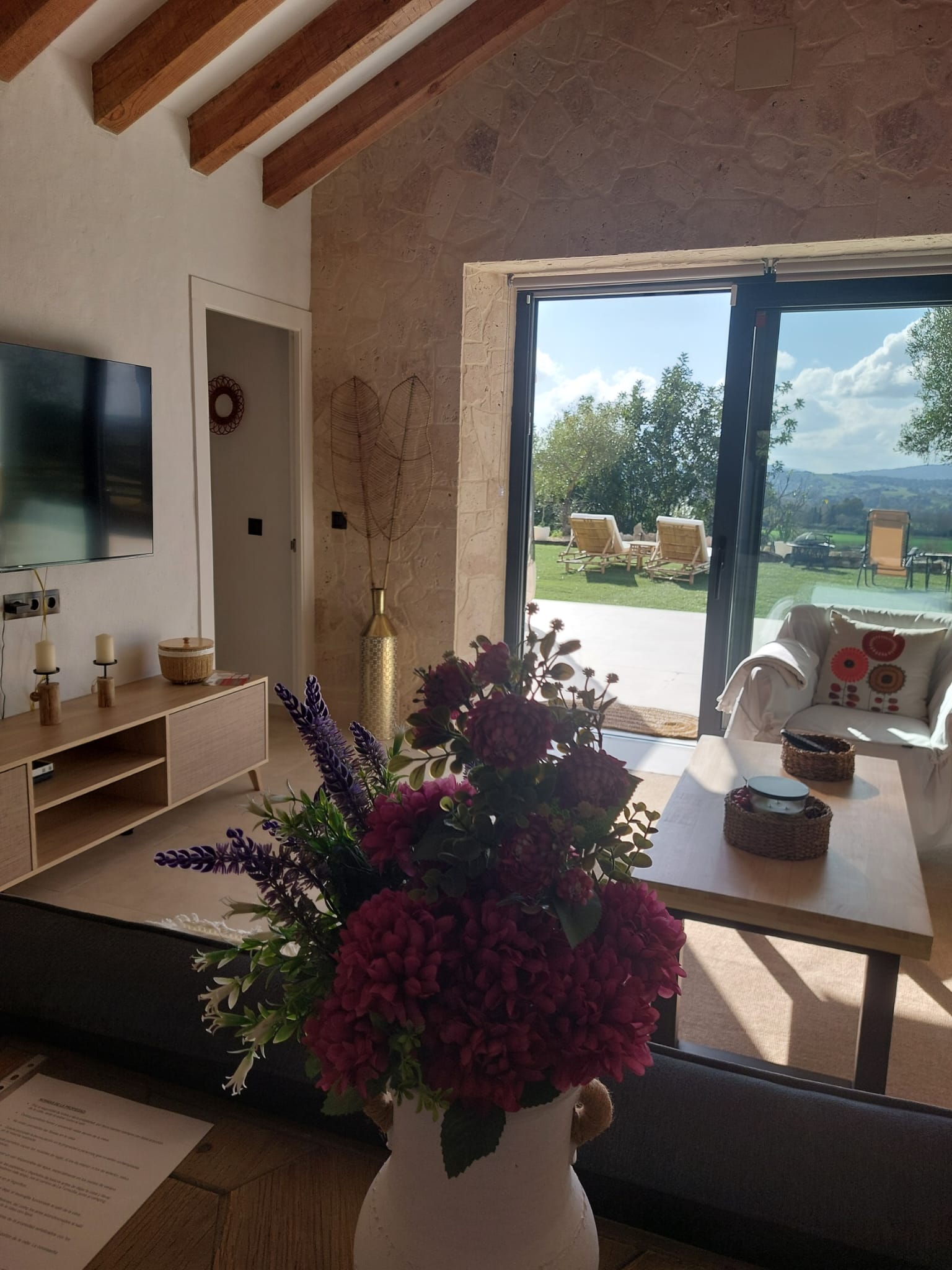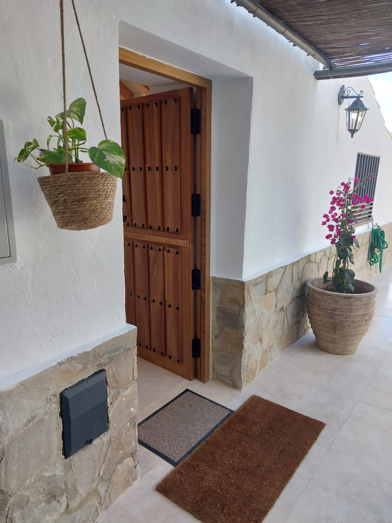 Los dos porches, uno delantero y otro trasero, ofrecen vistas únicas al atardecer, a los olivos centenarios y al paisaje montañoso que envuelve la finca.